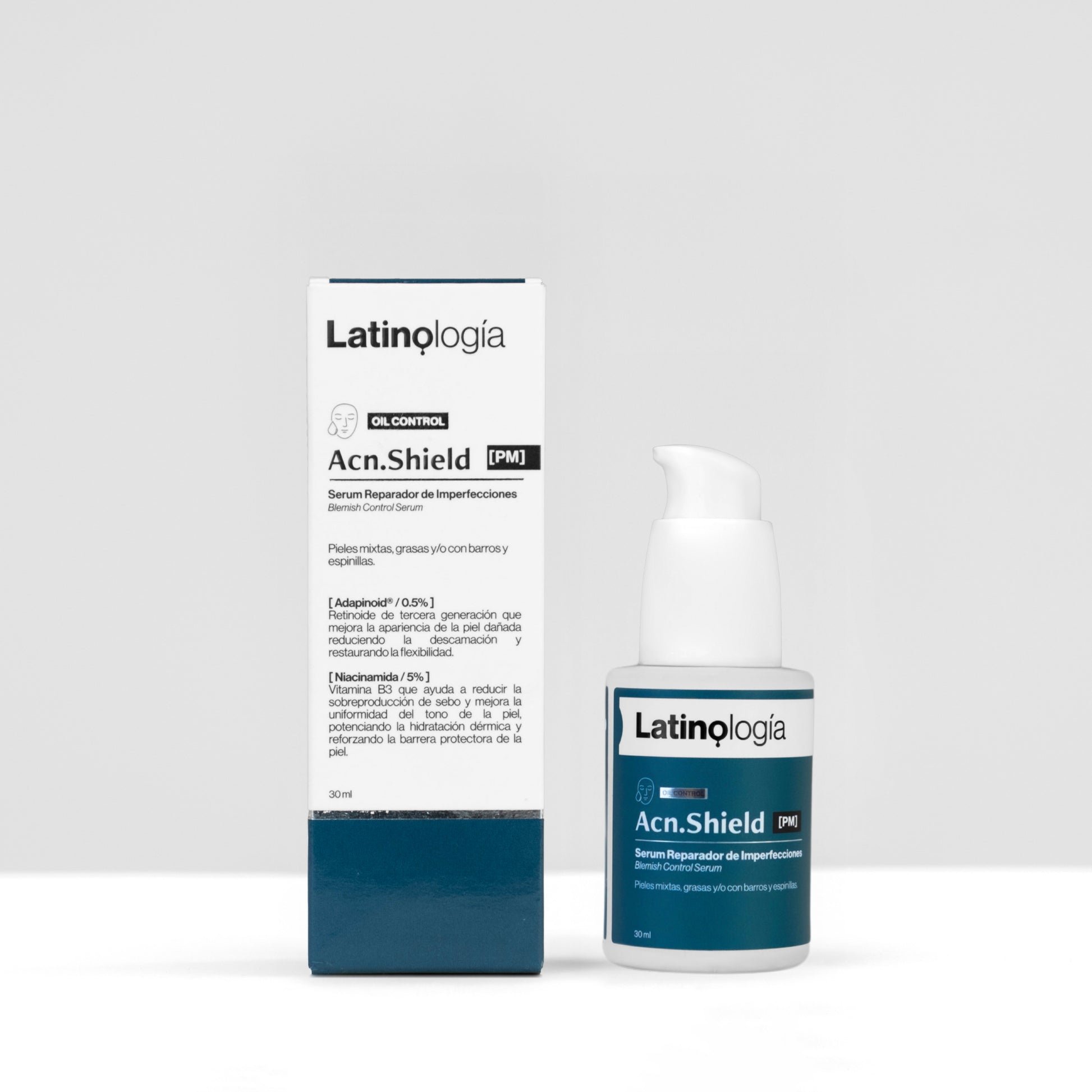 El Shield Serum Reparador PM de Latinología es un suero nocturno diseñado para restaurar y proteger la piel mientras duermes. Su fórmula avanzada combina antioxidantes, activos reparadores y agentes calmantes que ayudan a recuperar la barrera cutánea, disminuir el enrojecimiento y mejorar la textura de la piel.